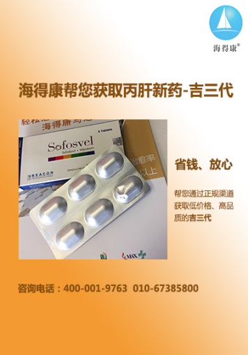 印度授权吉三代MyHep All 1.印度授权吉三代MyHep All价格是多少? 印度授权吉三代MyHep All由美国吉利德公司授权迈兰药厂生产,虽贵为授权药,但价格比之前上市的索非布韦、授权吉二代都低,每盒28片,定价1969元。 吉三代MyHep All治疗全基因型丙肝,仅需12周。失代偿期肝硬化的丙肝患者治疗方案略有不同,为吉三代+利巴韦林治疗12周,大大缩短了治疗时间和治疗成本。 2.印度授权吉三代MyHep All如何购买? 海得康工作人员经过多番实地考察,与印度大型医院:FORTIS富通医院和MEDANTA医院都建立了官方合作关系,可以带患者亲自去印度看医生,开处方后从正规渠道获取药品,对药品渠道和质量有严格的保障。 另外,因吉三代并未在国内未上市,所以国内医生缺少相关的用药经验,丙肝患者用药期间如出现不良反应,海得康能够及时联系印度医生给予解决方案,让患者明明白白用药。 3.印度授权吉三代MyHep All如何服用? 吉三代MyHep All的推荐的剂量和给药方法是口服每天1次,餐前餐后服用均可。但最好每天定时服药,相差不超过1小时。 4.印度授权吉三代MyHep All常见副作用有哪些? 吉三代MyHep All常见副作用是疲劳、头痛、恶心、腹泻、和失眠。一般情况下副作用不会持续很长时间。 关于印度吉三代MyHep All更多信息和购买渠道可咨询海得康医学顾问:400-001-9763,010-67385800,微信:headkonhdk。海得康专注严肃医疗,主要业务为海外就医服务(www.headkonhcv.com)和海外新特药(www.headkonmed.com)咨询服务,旨在为中国患者提供全球已上市药品的咨询,选择更新更有效的治疗手段和药物。 |